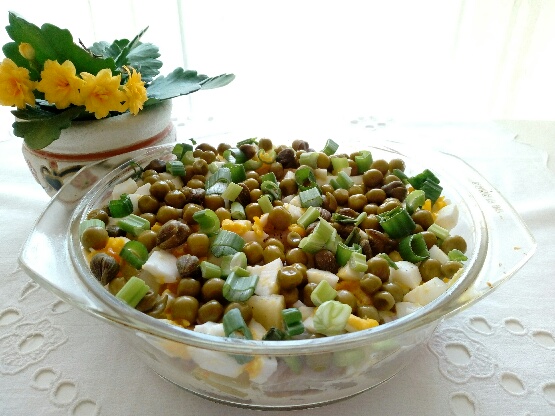 2 porcje/30 min Składniki: 2 śledzie a’la matiasy warzywa : 1 marchewka, 1 ziemniak, kawałek selera korzeniowego, 1/2 pora, 3 ząbki czosnku, 1 jabłko, 3 łyżki groszku z puszki, 1 łyżka kaparów z zalewy, 1 łyżka dymki lub szczypiorku 3 łyżki jogurtu oraz po 1 łyżce dowolnej musztardy i majonezu 2 jajka sól i pieprz do smaku Wykonanie: Śledzie namoczyć w mleku z wodą przez ok. 15 min. W osolonej wodzie ugotować al’dente marchewkę, ziemniaka i seler, następnie odcedzić i…